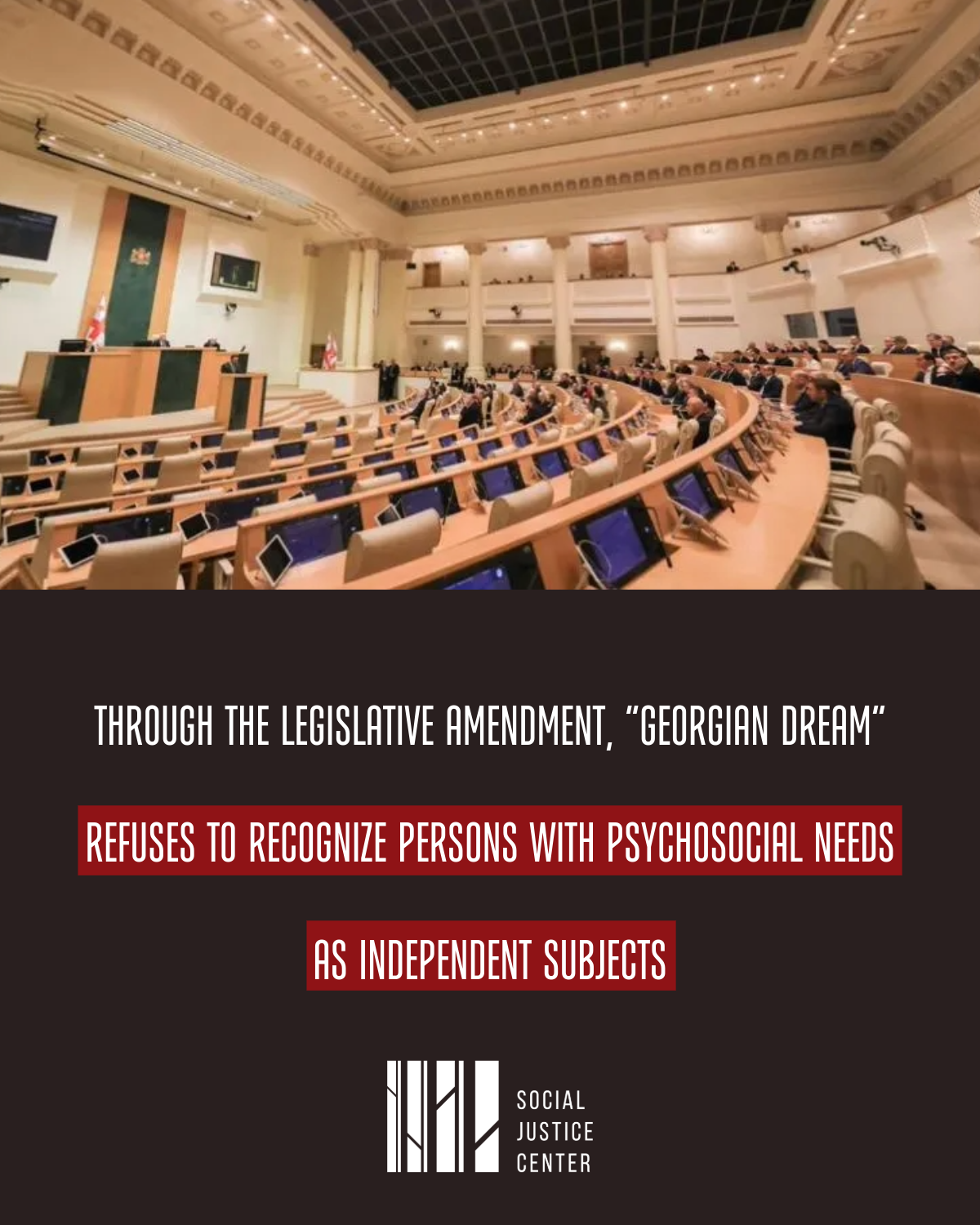 The Social Justice Center expresses its solidarity with persons with psychosocial needs and declares its readiness to provide support and assistance during the process of enforcement of legislation directed against them.