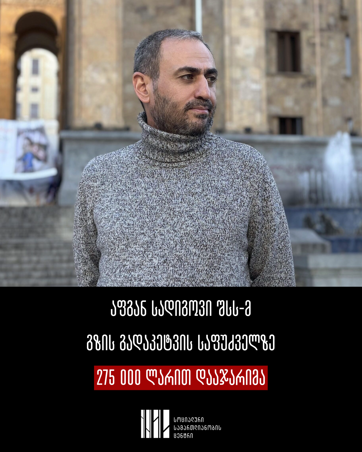როგორც საზოგადოებისთვის ცნობილია, აზერბაიჯანელი ჟურნალისტი აფგან სადიგოვი თბილისის საქალაქო სასამართლომ 2025 წლის 23 ოქტომბერს გზის სავალი ნაწილის გადაკეტვის გამო ადმინისტრაციულ სამართალდამრღვევად ცნო და მას 14-დღიანი ადმინისტრაციული პატიმრობა შეუფარდა. 5 ნოემბერს, 19:20 საათზე, აფგან სადიგოვი მარნეულის დროებითი მოთავსების იზოლატორს დატოვებს.