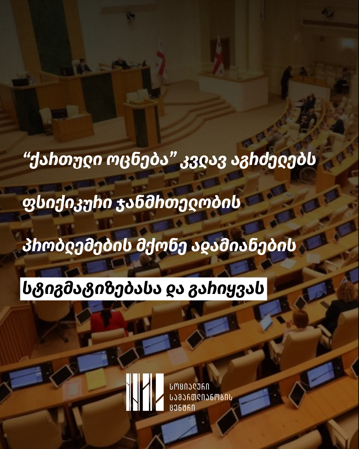 15 დეკემბერს, საჯაროდ გამოქვეყნდა “ქართული ოცნების” დეპუტატების მიერ მიღებული საკანონმდებლო ცვლილებების პაკეტი, რომელიც, სხვა საკითხებთან ერთად, ფსიქიკური ჯანმრთელობის პრობლემების მქონე, ასევე, ნარკოტიკული ნივთიერებებისა და ალკოჰოლის მომხმარებელთა ერთიანი საინფორმაციო ბაზის შექმნასაც ეხება. მიგვაჩნია, რომ აღნიშნული ცვლილებები უგულებელყოფს ადამიანის უფლებებზე დაფუძნებულ მიდგომებს, ჯანმრთელობის მდგომარეობის საფუძვლით აყალიბებს დისკრიმინაციულ პოლიტიკას და არღვევს პერსონალური მონაცემების კონფიდენციალურობის პრინციპს. მისი შინაარსის გათვალისწინებით, ცვლილებები,