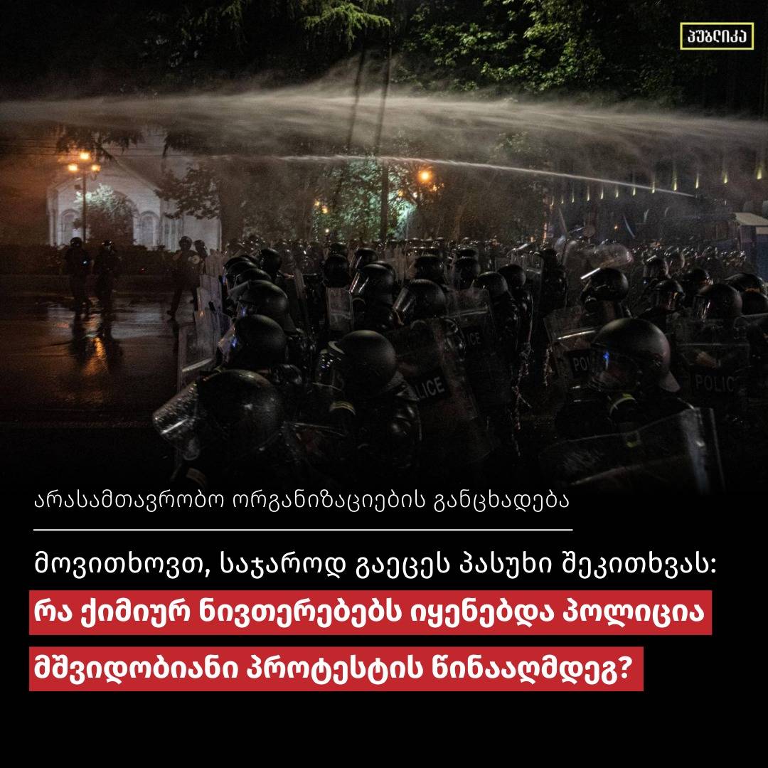 ამავდროულად, მოვითხოვთ, საჯაროდ გაეცეს პასუხი შეკითხვას: რა ქიმიურ ნივთიერებებს იყენებდა პოლიცია 2024 წლის ნოემბერ-დეკემბერში მშვიდობიანი პროტესტის წინააღმდეგ.