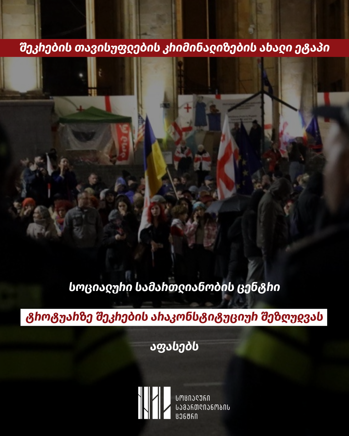 2025 წლის 8 დეკემბერს „ქართულმა ოცნებამ“ შეკრების თავისუფლების შემზღუდველი კიდევ ერთი რეპრესიული საკანონმდებლო ცვლილება დააინიცირა, რომელიც რამდენიმე დღეში დაჩქარებული წესით განიხილა და 12 დეკემბერს უკვე ძალაში შევიდა. საკანონმდებლო ცვლილებები, რომლებიც კიდევ უფრო მეტად ავიწროებს მშვიდობიანი შეკრების დასაშვებ ფარგლებს, ჩვენი შეფასებით, არაკონსტიტუციურია და გაუმართლებლად ერევა შეკრების თავისუფლებით დაცულ სფეროში.