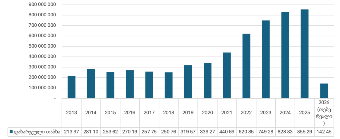 დიაგრამა N4. სოციალურ შემწეობაზე გადარიცხული თანხის ოდენობა (2013-2026 წწ)